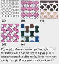 Figure 9(c) shows a scallop pattern, often used for fences. The I-Bar pattern in Figure 9(e) is sometimes used in tiling walls, but is more commonly used for floors, pavements, and paths.