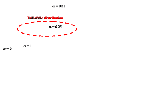 Verifying existence of a power law distribution is not easy and requires enough number of samples to show the “tail” of the distribution. The tail of the distribution refers to the samples with large (or rare) values. For example, for the power law distributions in Figure 2, the portion of the distribution when x is greater than 10 (i.e. x>10) roughly corresponds to the “tail.” The tail corresponds to the rare samples. Though statistical theory calls those rare samples “outliers,” the distribution will not be a power law distribution without them. They are strictly parts of pieces that constitute a power law relationship, and observing them typically requires long periods or large numbers of measurements. Due to this difficulty, the existence of the power law is questioned for many real systems. Most of the time, claims of the existence of the power law typically come with an error factor indicating the confidence of the claim. The bottom-line is to observe trends in the samples and thus establish sufficient confidence (e.g., more than 95%) that the power law distribution does exist in the samples.