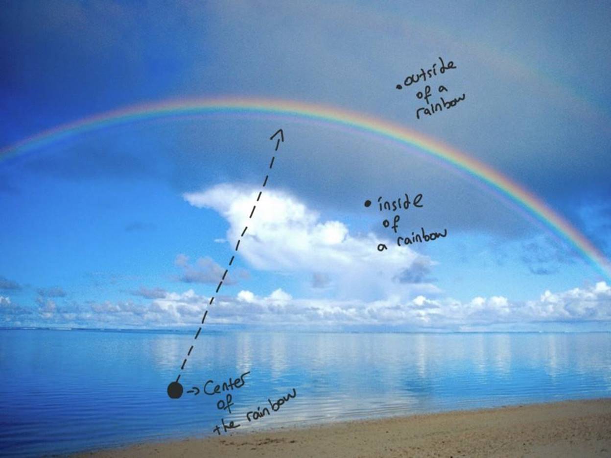 There are four fundamental facets we need to cover to understand a rainbow (Figure 1.0). The first is the “radius” of a rainbow. Since every rainbow has a radius, this means a rainbow is a circle. And every circle has a center point. A rainbow’s center point is below the horizon. Here, we can ask these follow-up questions: