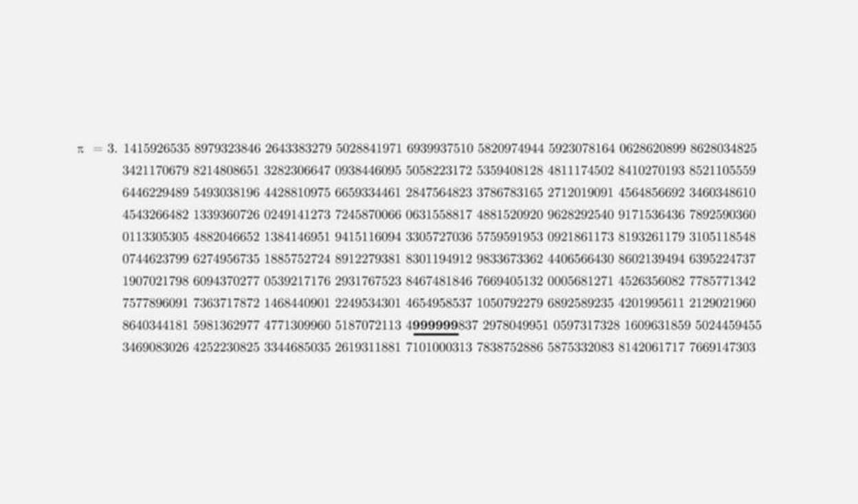 For instance, after the first 761 digits of pi, there is a famous mathematical coincidence where six nines occur in a row which is called the Feynman point.