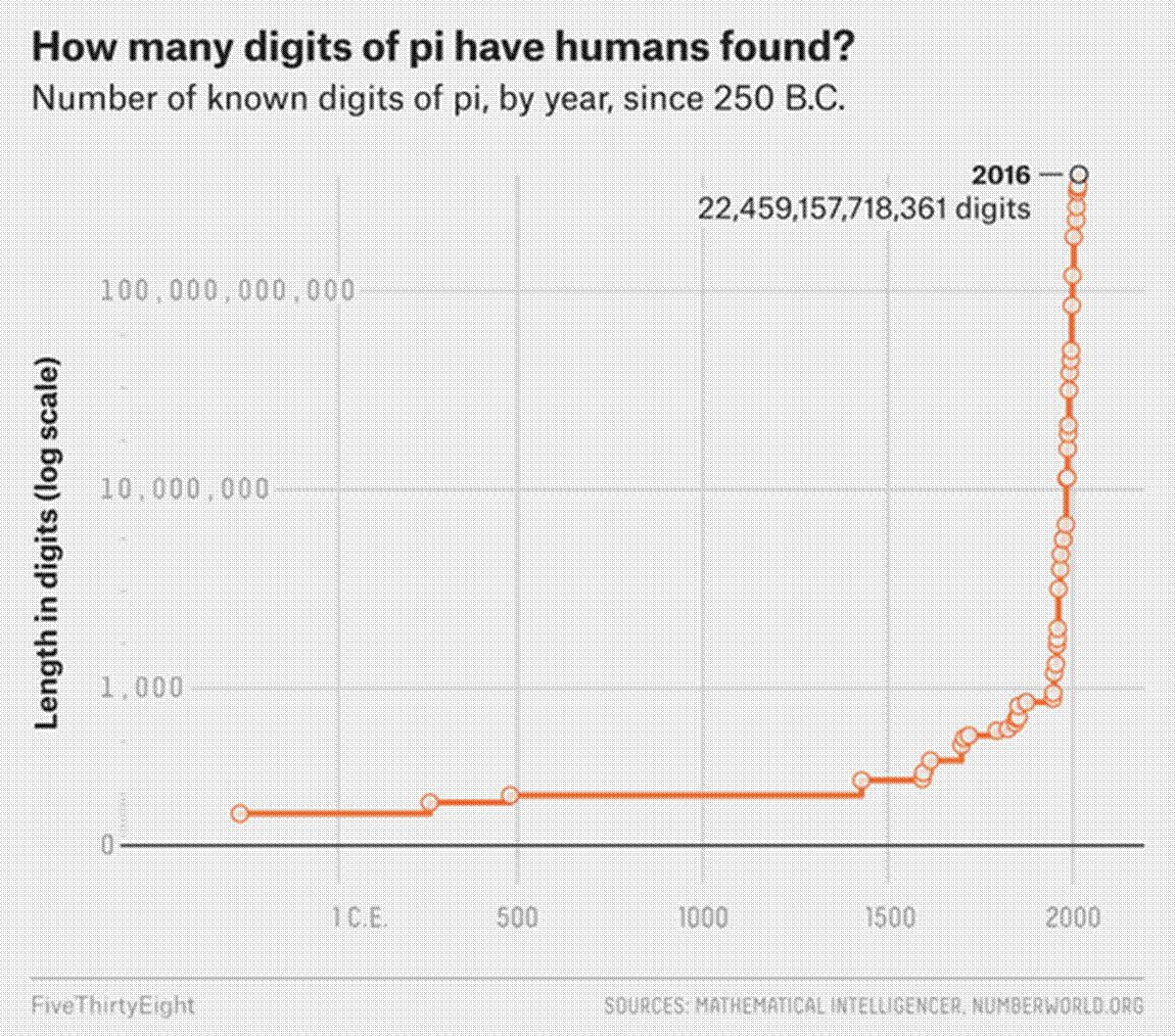 FiveThirtyEight, Graph, “Even After 31 Trillion Digits, We’re Still No Closer To The End Of Pi”