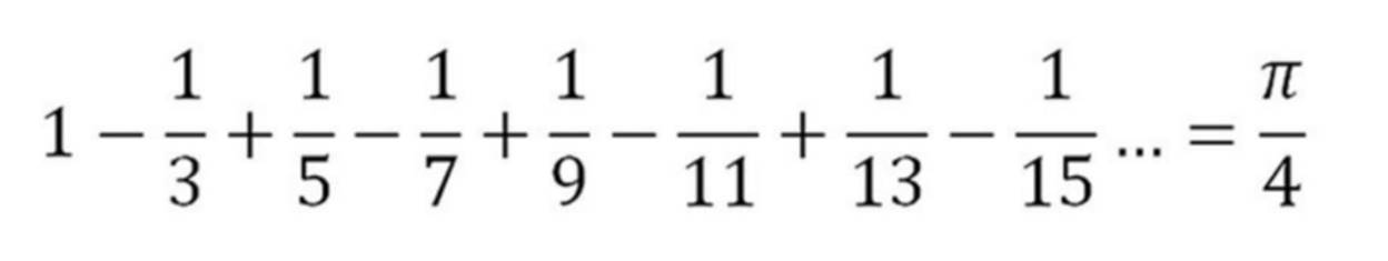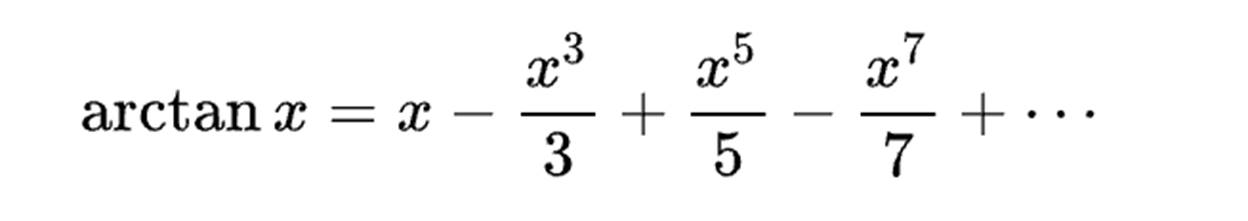 He put x = 1 into the inverse-tangent series. He showed us the further we go, the closer to the estimation of pi we get. However, in order to get 10 digits of pi, we need to write about 5 billion fractions.