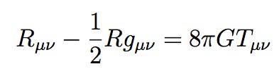 The formula above calculates how objects with a large mass, such as stars and galaxies, can curve space and time with their gravity. Einstein said that, just like a ball sitting on a bedsheet, any form of momentum and energy can also curve space-time around it. In words, the formula is saying: